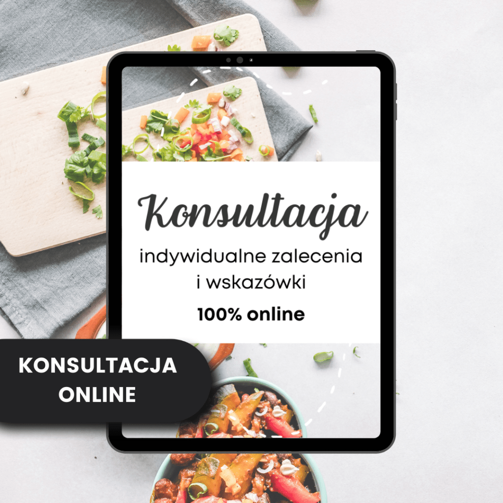 Konsultacja w 100% online. Oparta na dokładnej ankiecie, którą wypełnisz. Analizuję, podpowiadam i wyjaśniam Twoje problemy żywieniowe.