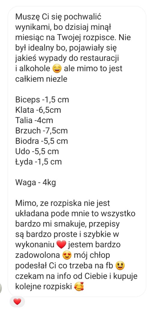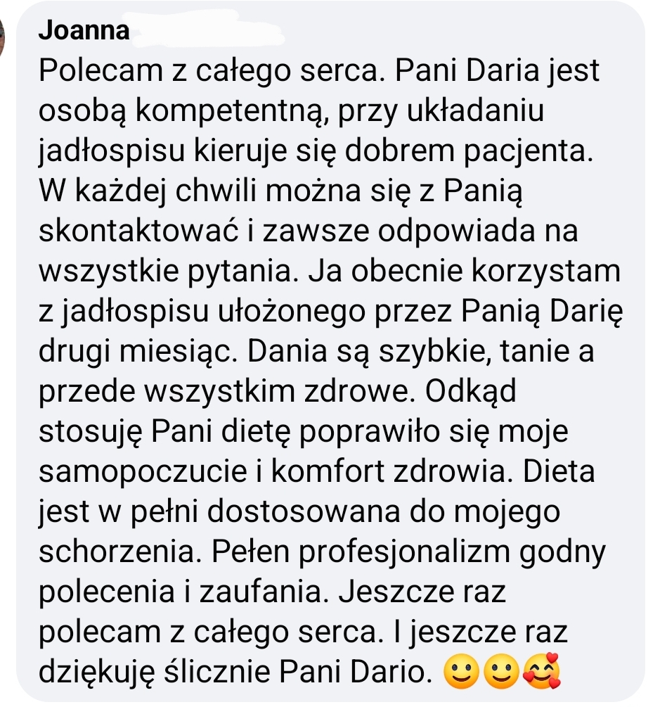 Im więcej szczegółów napiszesz, tym lepiej Ci pomogę. Na bazie Twoich odpowiedzi konstruuję jadłospis oraz zalecenia.