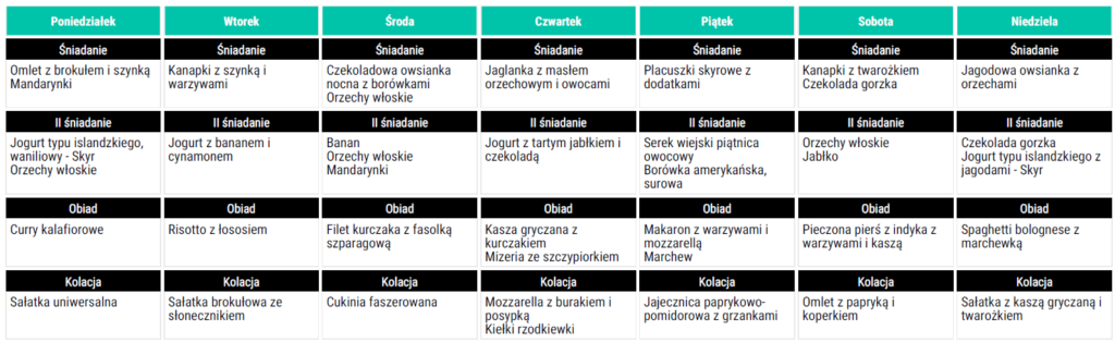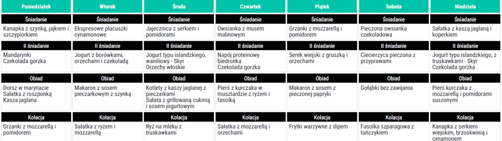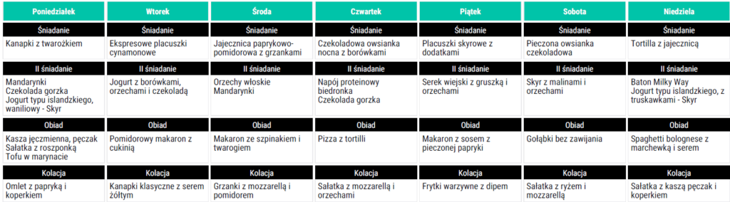 Jadłospis na 21 dni (poprzednie tygodnie + ten)
